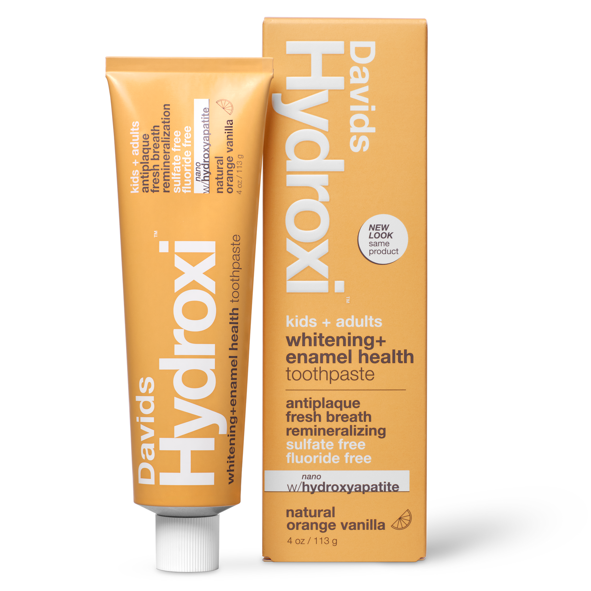 Davids Hydroxi™ whitening + enamel health, nano-hydroxyapatite toothpaste, kids + adults / orange vanilla