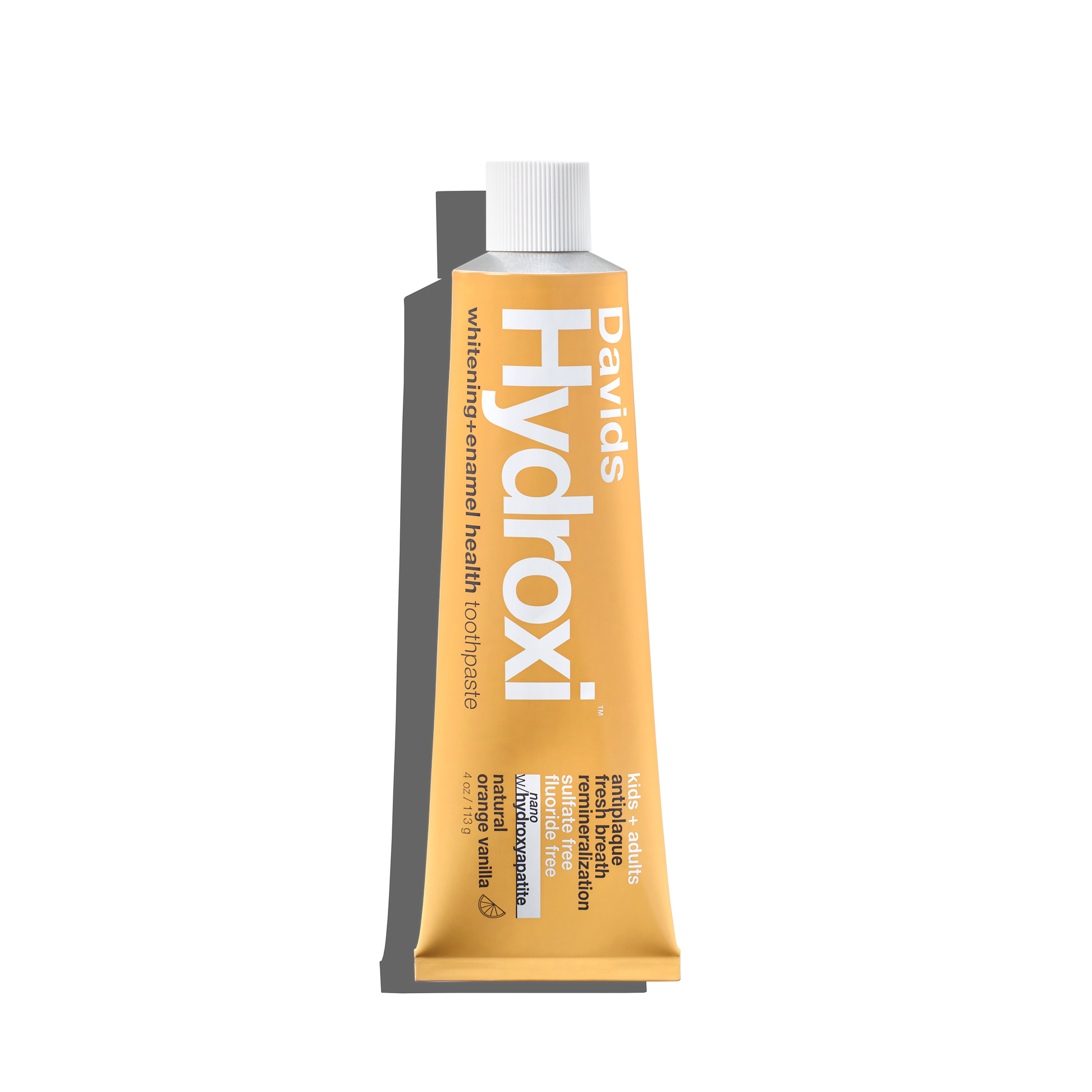 Davids Hydroxi™ powers this orange toothpaste, making brushing enjoyable for both kids and adults.